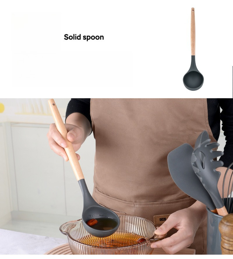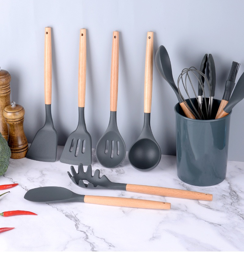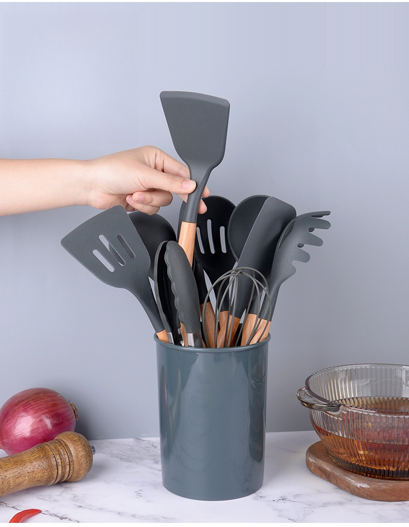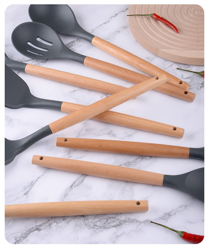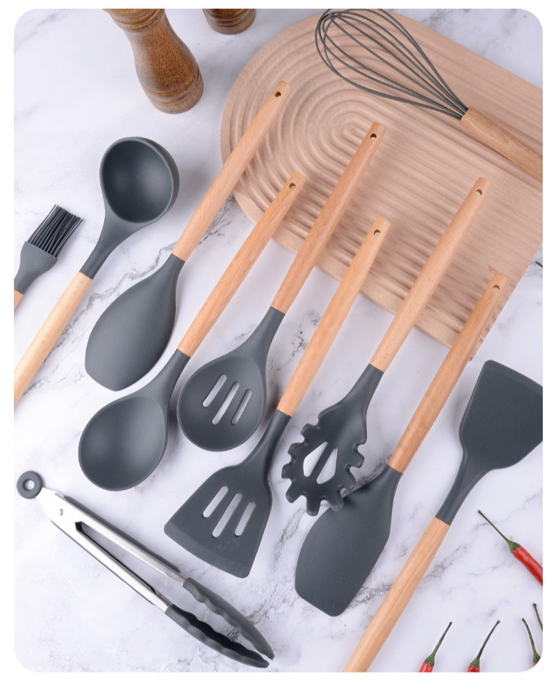 硅胶厨具12件套厨房套装家用不粘锅专用锅铲木柄汤勺烹饪炒菜铲子