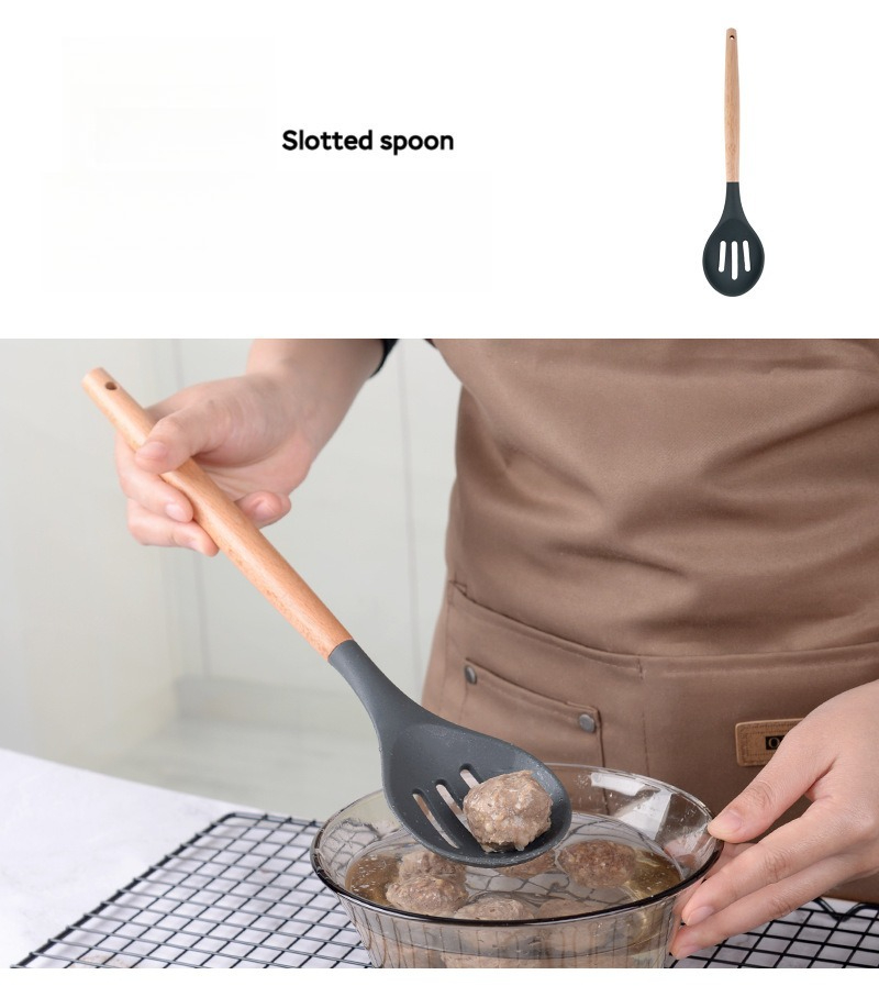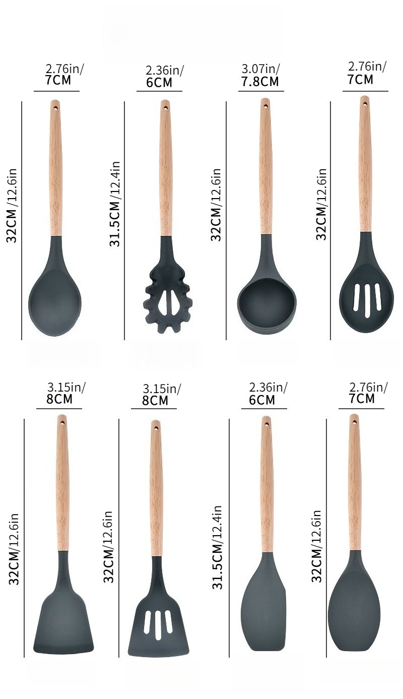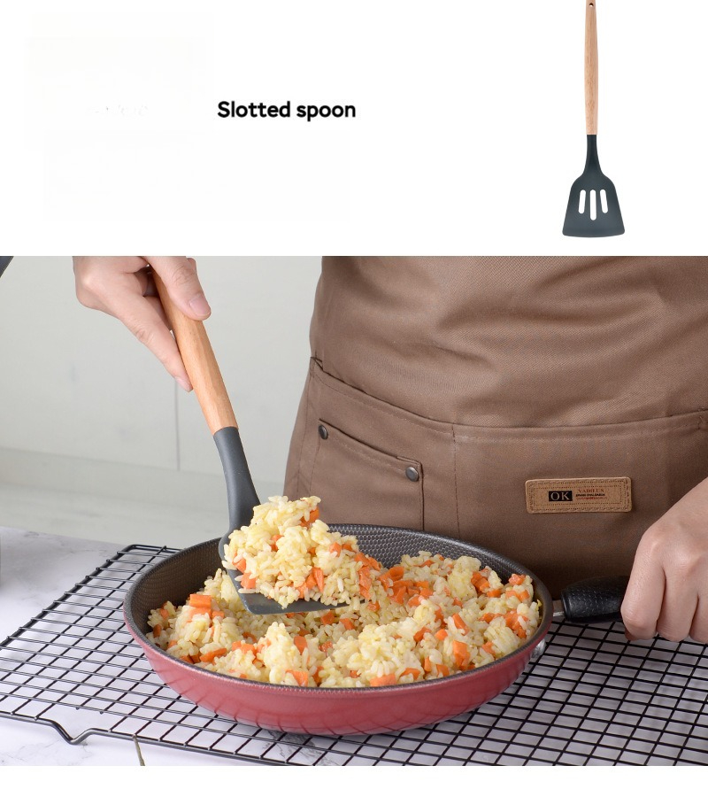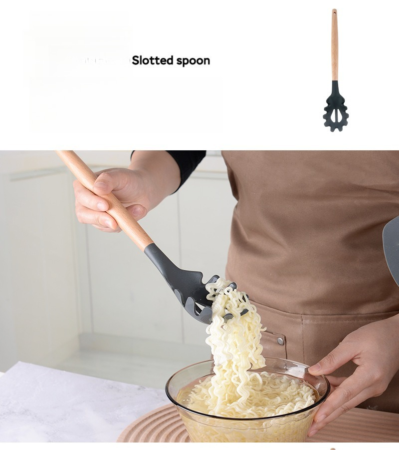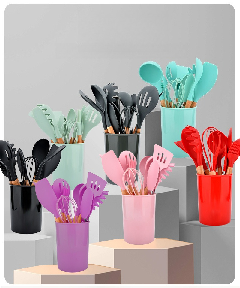 硅胶厨具12件套厨房套装家用不粘锅专用锅铲木柄汤勺烹饪炒菜铲子