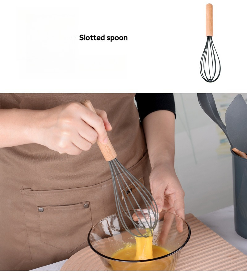 Elevate your daily cooking experience with our thoughtfully designed 12-Piece Silicone Kitchen Utensils Set. Crafted for those who value both function and care in their kitchen, this set combines  silicone with smooth beechwood handles to bring comfort, safety, and simplicity to every meal.