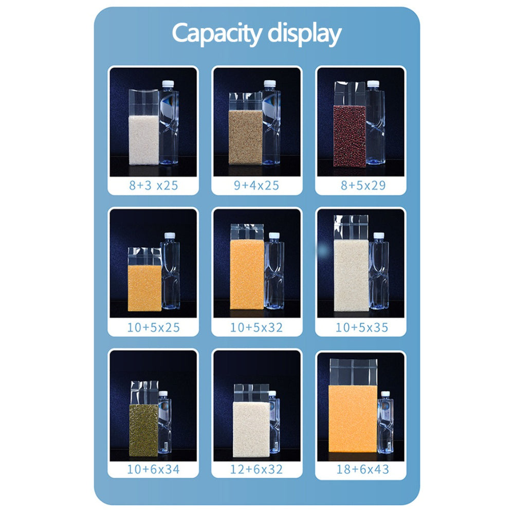 Eg: 9+4*25cm: Width 9cm+Thickness 4cm*Length 25cm,can fill 0.5kg rice.