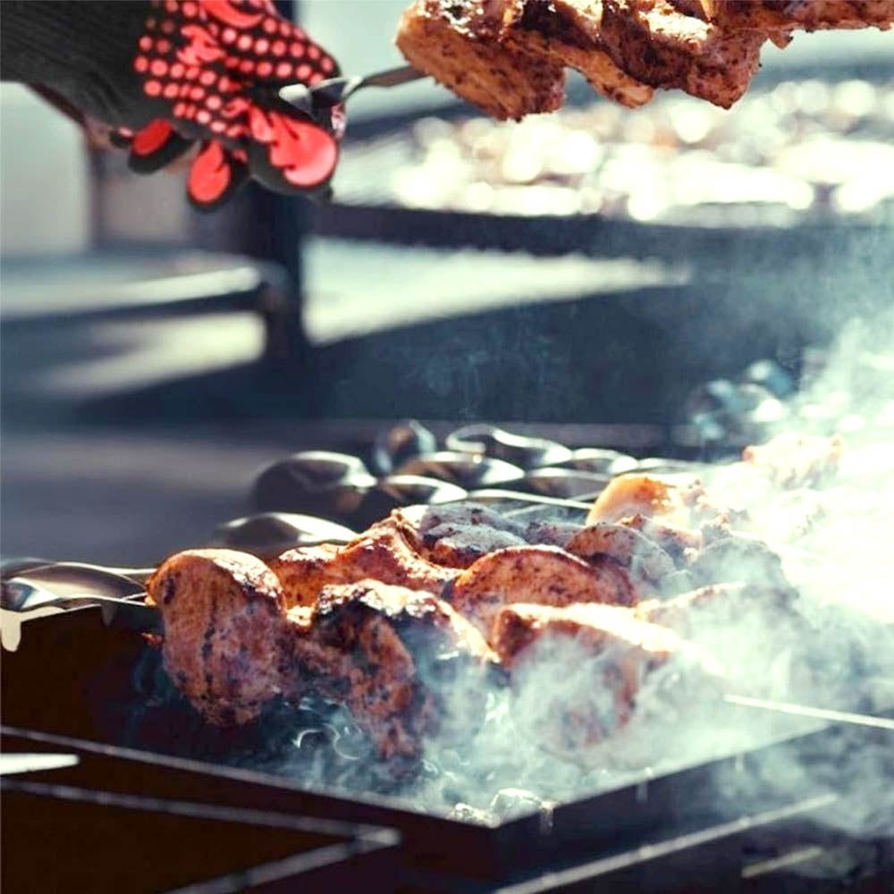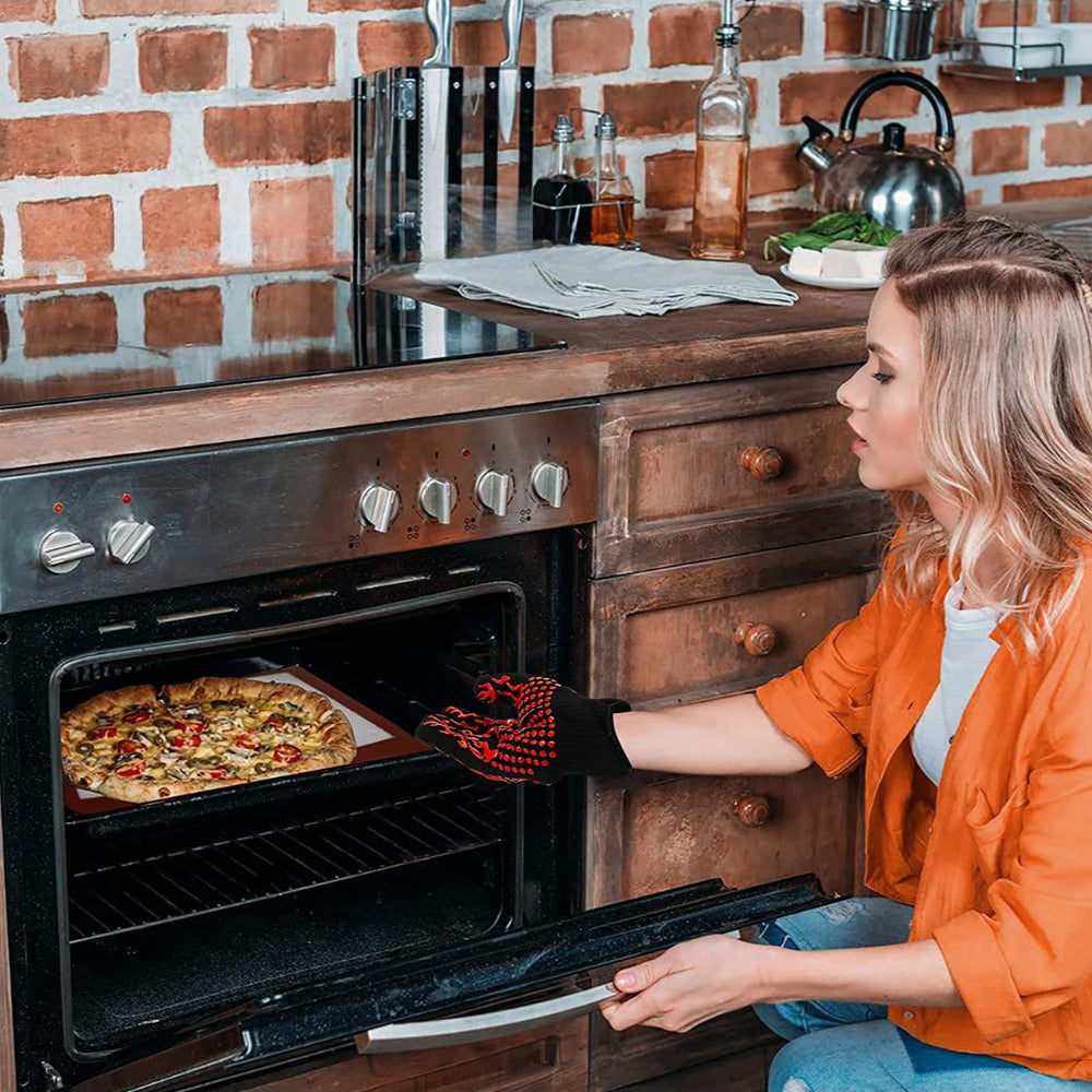 2pcs/Pair Heat Resistant Gloves for BBQ Double Layer Thickened Silicone Oven Gloves Fire Retardant Cooking Gloves for Grilling